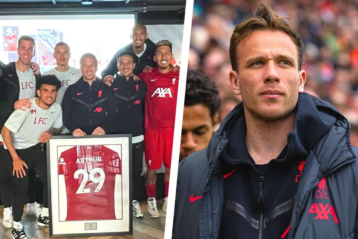 Though he only played once in his season at Liverpool, Arthur leaves with “beautiful memories,” as the squad presented him with a parting gift.