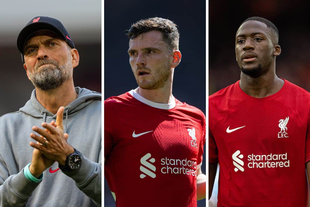 Jurgen Klopp has suggested that both Andy Robertson and Ibrahima Konate may not be available for the weekend’s trip to Southampton.