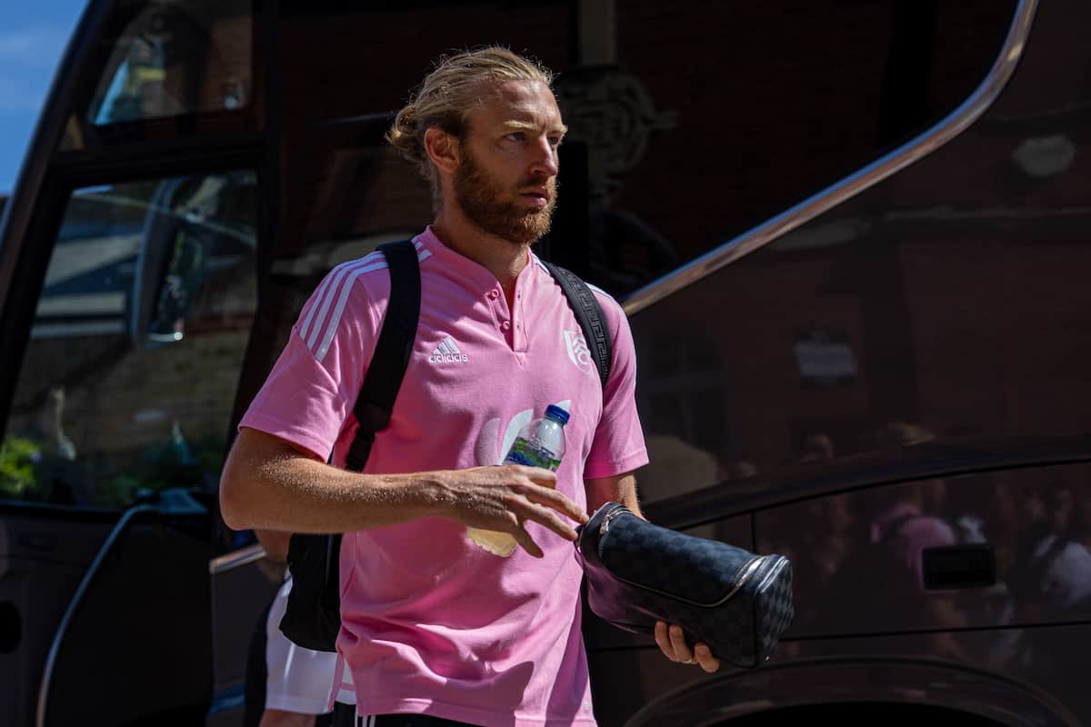 LONDON, ENGLAND - Saturday, August 6, 2022: Fulham's Tim Ream arrives before the FA Premier League match between Fulham FC and Liverpool FC at Craven Cottage. The game ended in a 2-2 draw. (Pic by David Rawcliffe/Propaganda)
