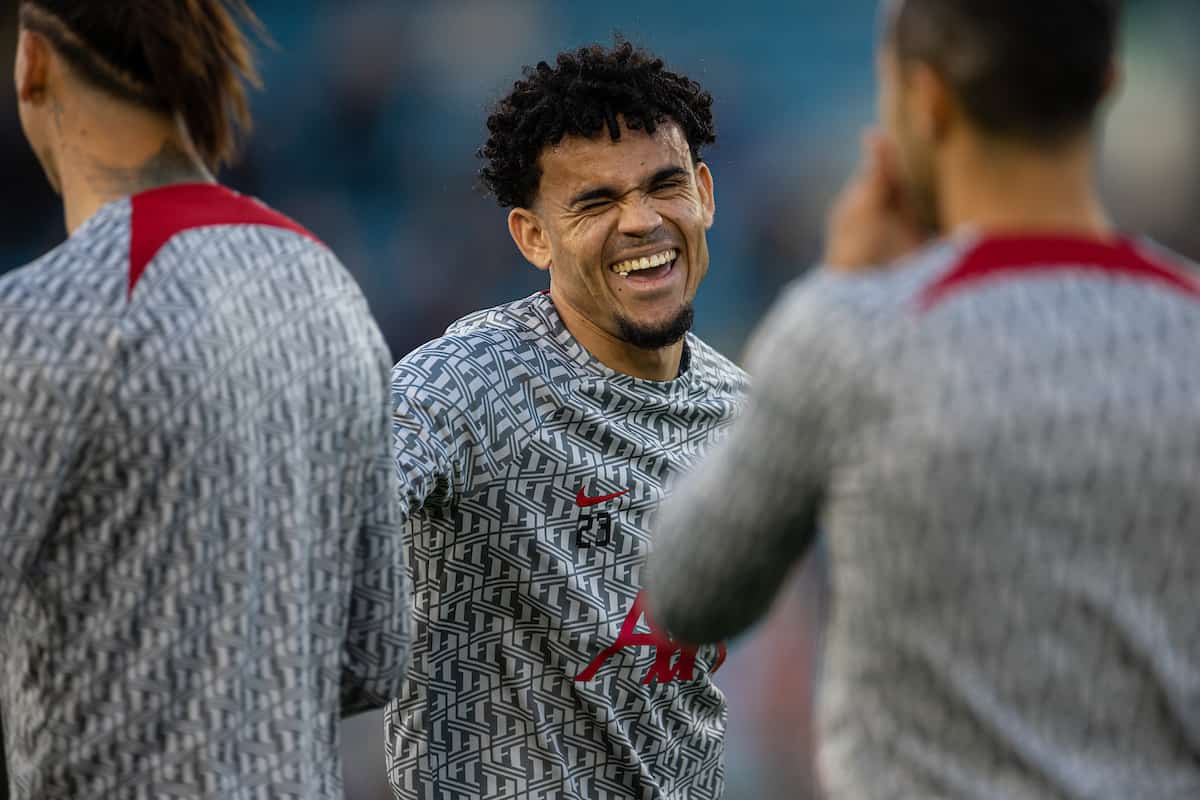 LEEDS, ENGLAND - Monday, April 17, 2023: Liverpool's Luis Díaz during the pre-match warm-up before the FA Premier League match between Leeds United FC and Liverpool FC at Elland Road. (Pic by David Rawcliffe/Propaganda)