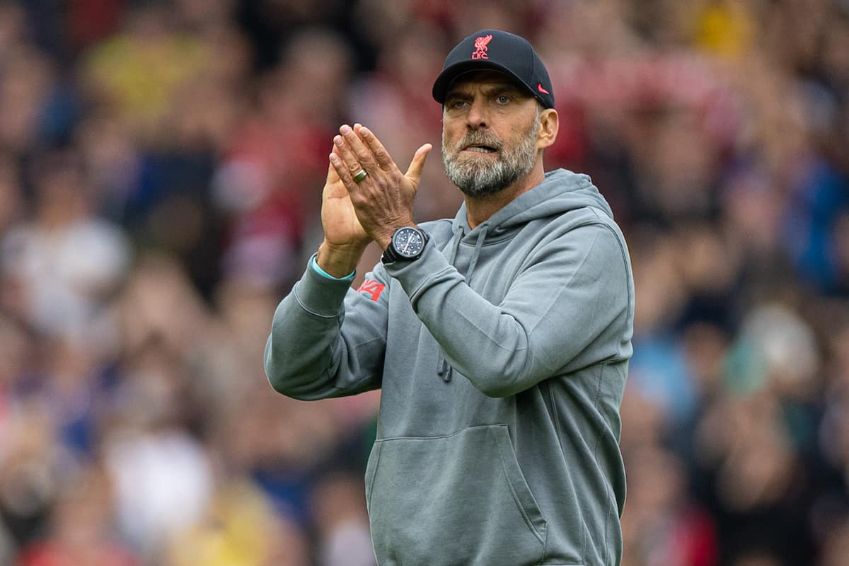 LIVERPOOL, ENGLAND - Saturday, April 22, 2023: Liverpool's manager Jürgen Klopp applauds the supporters after the FA Premier League match between Liverpool FC and Nottingham Forest FC at Anfield. Liverpool won 3-2. (Pic by David Rawcliffe/Propaganda)