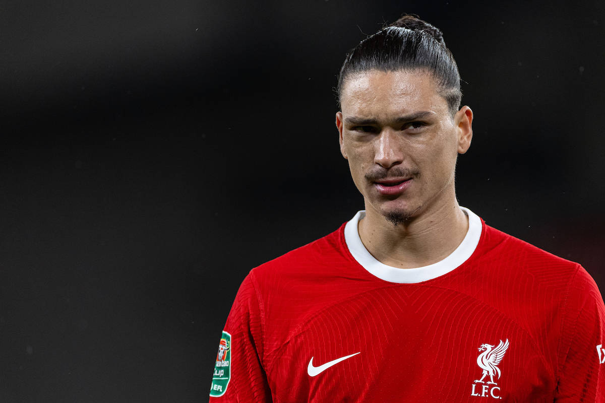 Darwin Nunez could be considered a doubt to start for Liverpool against Everton on Saturday, after revealing he suffered cramp late on for Uruguay.