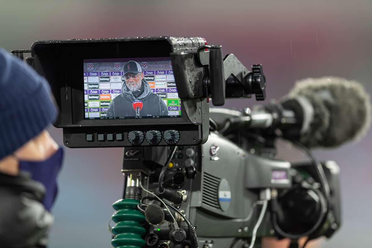 LONDON, ENGLAND - Sunday, January 31, 2021: Liverpool's manager Jürgen Klopp gives a television interview after the FA Premier League match between West Ham United FC and Liverpool FC at the London Stadium. Liverpool won 3-1. (Pic by David Rawcliffe/Propaganda)