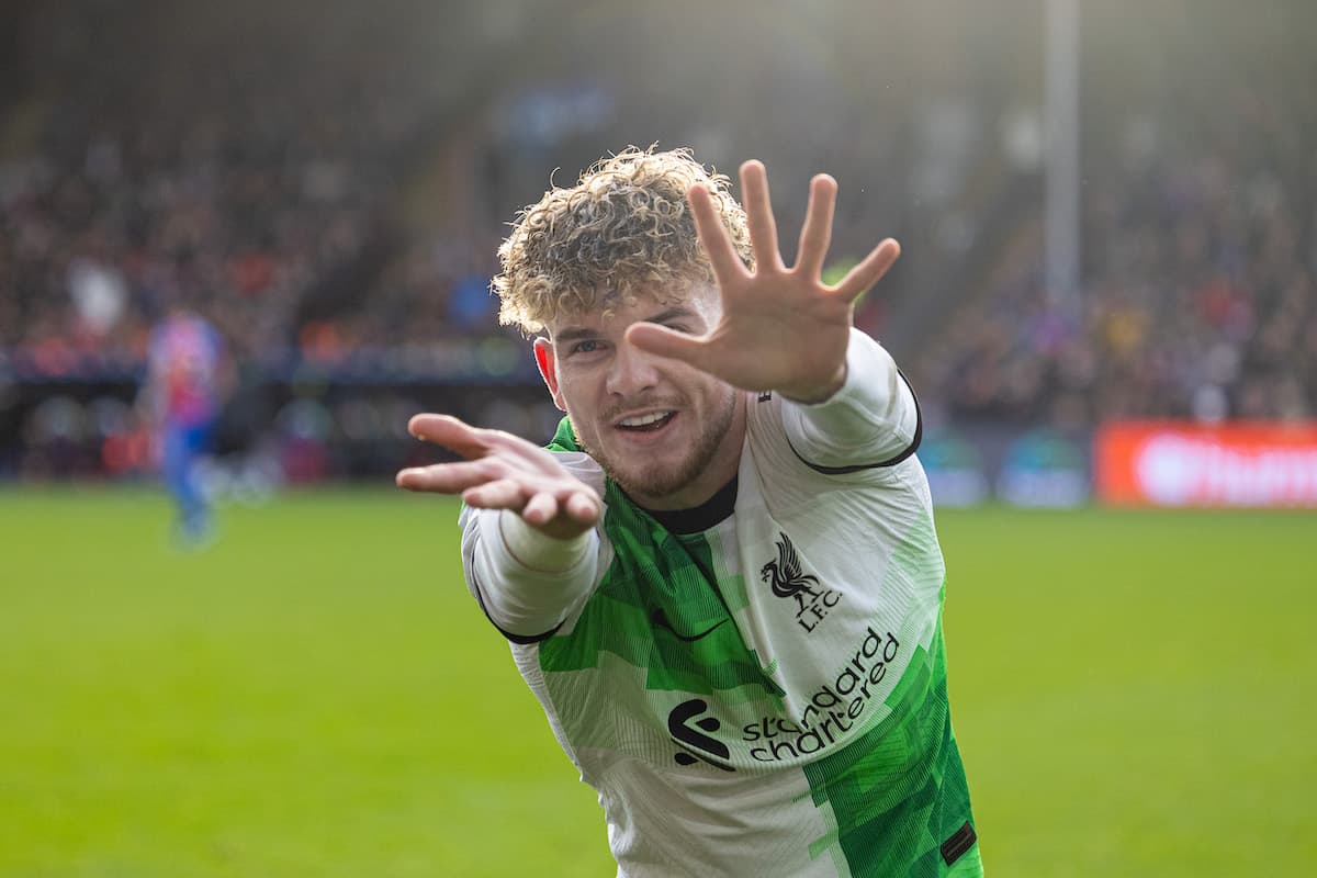 LONDON, ENGLAND - Saturday, December 9, 2023: Liverpool's Harvey Elliott celebrates after scoring the second goal during the FA Premier League match between Crystal Palace FC and Liverpool FC at Selhurst Park. (Photo by David Rawcliffe/Propaganda)