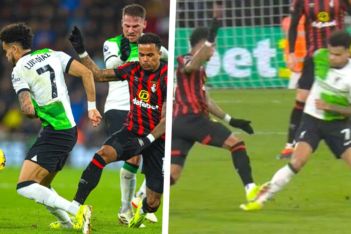 Bournemouth winger Justin Kluivert escaped punishment for a studs-up tackle on Luis Diaz, with Liverpool fans left unsurprised after learning who was on VAR.