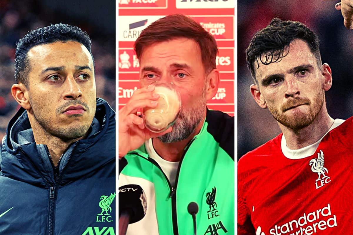 • Klopp has said there is “no timeframe” on a return for Thiago – he didn’t appear optimistic that we’d see him again this season