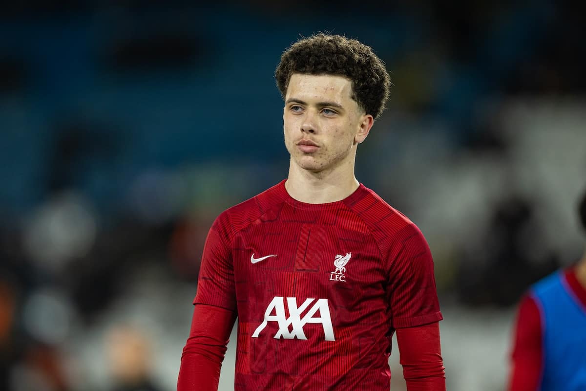 LEEDS, ENGLAND - Thursday, February 29, 2024: Liverpool's Kieran Morrison during the pre-match warm-up before the FA Youth Cup 5th Round match between Leeds United FC Under-18's and Liverpool FC Under-18's at Elland Road. (Photo by David Rawcliffe/Propaganda)