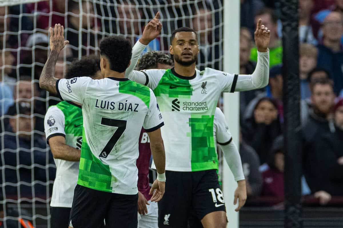 Villa ‘keeper Emi Martinez fumbled a deflection off a cross from Harvey Elliott for a horrendous error to give Liverpool the early lead.