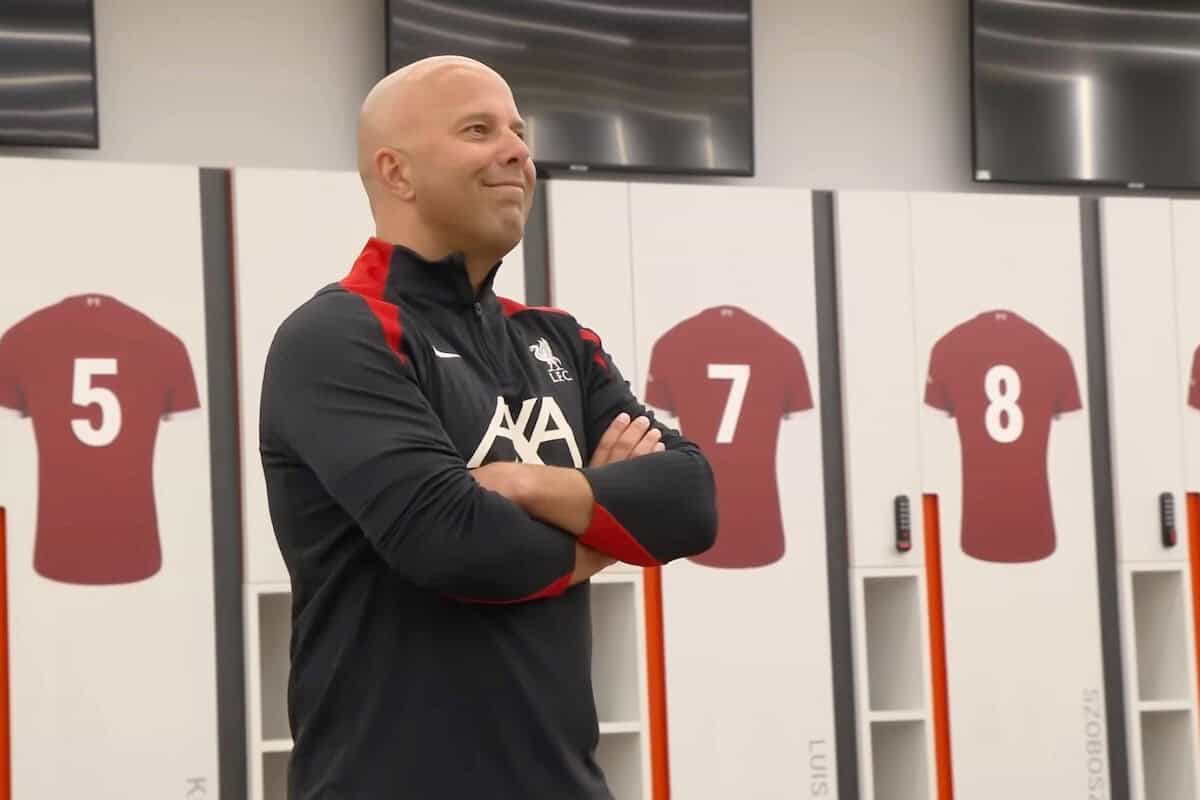 Arne Slot has explained why he will rarely enter the players’ changing room at the AXA Training Centre, as he made his way around Liverpool’s training ground.