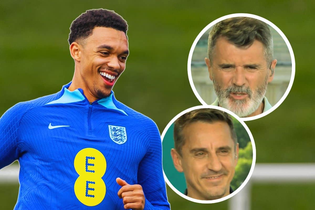 With Gareth Southgate reportedly playing Alexander-Arnold in midfield for England’s first match against Serbia, Keane and Gary Neville were debating the merits of this.