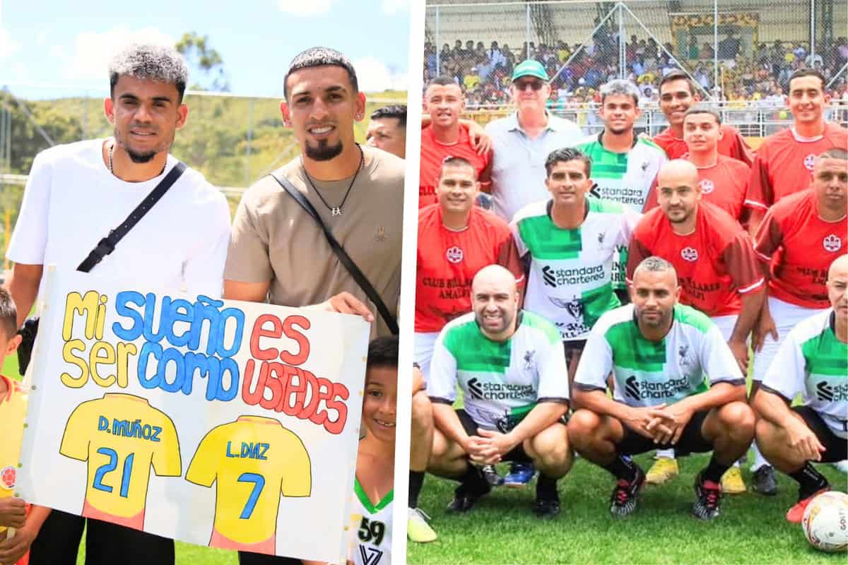 The pair then took part in an exhibition match at the Gonzalo Trujillo Vasquez Sports Complex, with Diaz wearing a knock-off Liverpool shirt as he took part in the clash with local side Felinos FC.