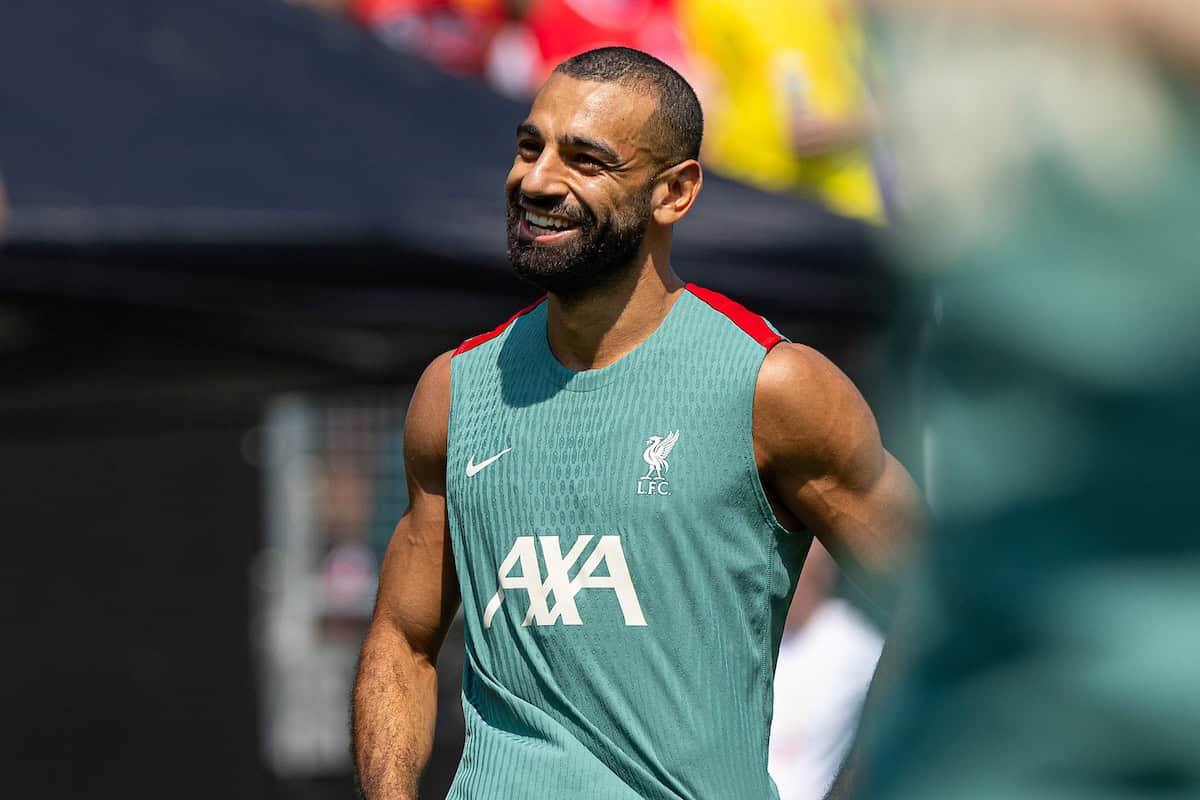PHILADELPHIA - Sunday, July 28, 2024: Liverpool's Mohamed Salah during an open training session at Lincoln Financial Field on day five of the club's pre-season tour of the USA. (Photo by David Rawcliffe/Propaganda)
