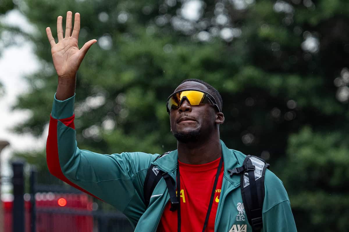 COLUMBIA - Saturday, August 3, 2024: Liverpool's Ibrahima Konaté arrives before a pre-season friendly match between Liverpool FC and Manchester United FC at the Williams-Brice Stadium on day eleven of the club's pre-season tour of the USA. (Photo by David Rawcliffe/Propaganda)