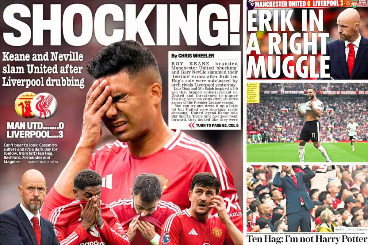 “It was difficult to imagine a more perfect afternoon for Arne Slot – or a more harrowing one for Erik ten Hag who, just three games into the Premier League season, is back on familiar territory; the vultures circling, his credentials as the Manchester United manager under yet more scrutiny.