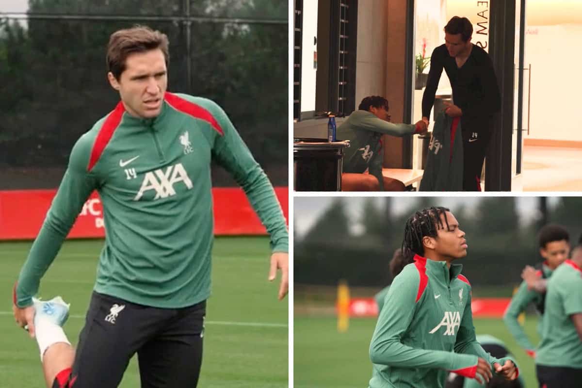 Federico Chiesa trained alongside Liverpool’s newest signing, 16-year-old Rio Ngumoha, on Thursday, with the pair catching the eye in the U21s’ session.