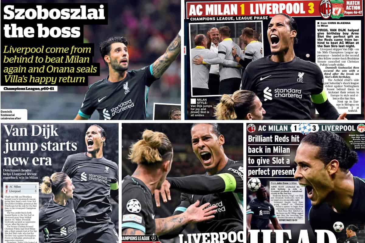 Arne Slot‘s side recovered from conceding an early goal to win 3-1 at the San Siro, thanks to goals from Ibrahima Konate, Virgil van Dijk and Dominik Szoboszlai.