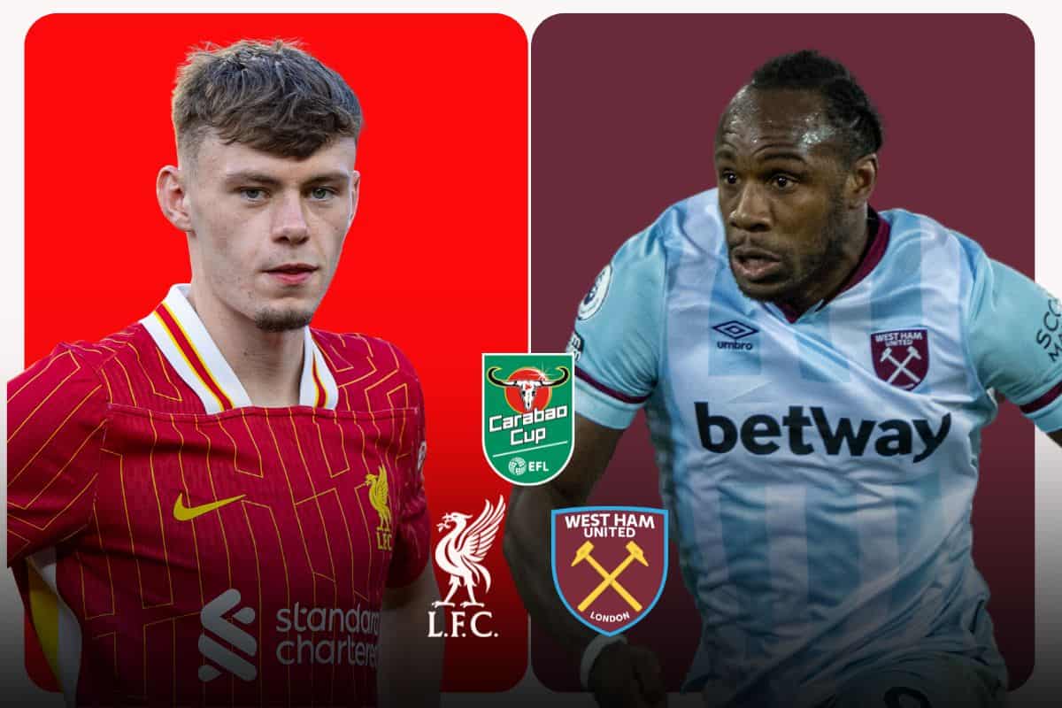 Liverpool play at Anfield for the second time in five days as they return to League Cup action against West Ham on Wednesday night.