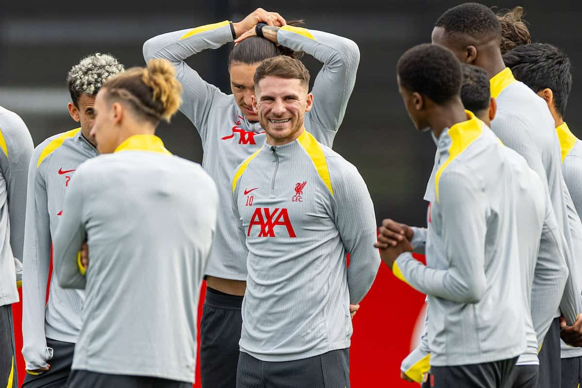 Twenty-one Liverpool players trained in Kirkby on Tuesday lunchtime as Arne Slot‘s squad made their final preparations for their third European match of the season.