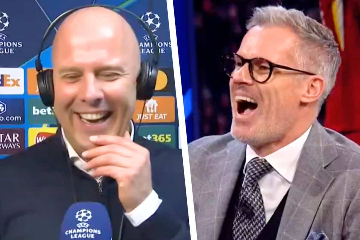 Arne Slot has hilariously hit Jamie Carragher with a light-hearted joke regarding his post-match analysis, saying he didn’t agree with it.