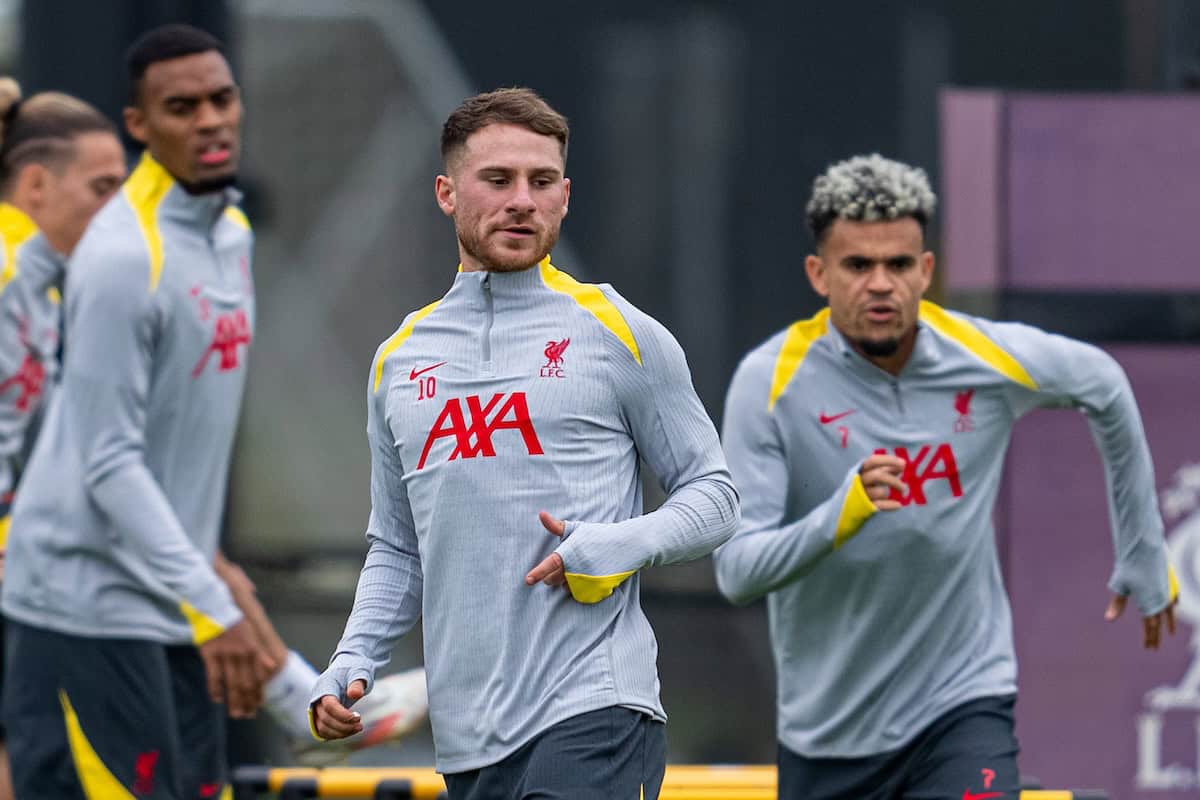 LIVERPOOL, ENGLAND - Monday, September 16, 2024: Liverpool's Alexis Mac Allister during a training session at the AXA Training Centre ahead of the UEFA Champions League match between AC Milan and Liverpool FC. (Photo by Jon Super/Propaganda)
