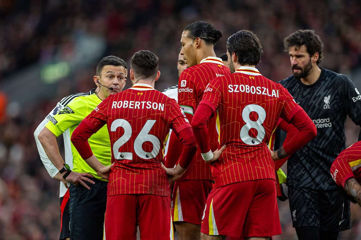 Andy Robertson was shown a straight red card early in the meeting against Fulham, meaning he will miss Liverpool’s next game – against Southampton in the League Cup.