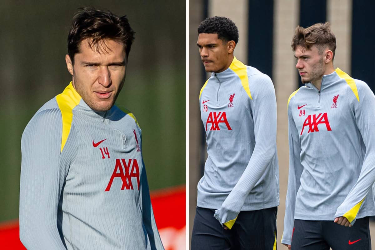 A 26-man squad trained at the AXA on Friday afternoon ahead of the weekend’s clash with Man United, with Ibrahima Konate and Conor Bradley both involved.