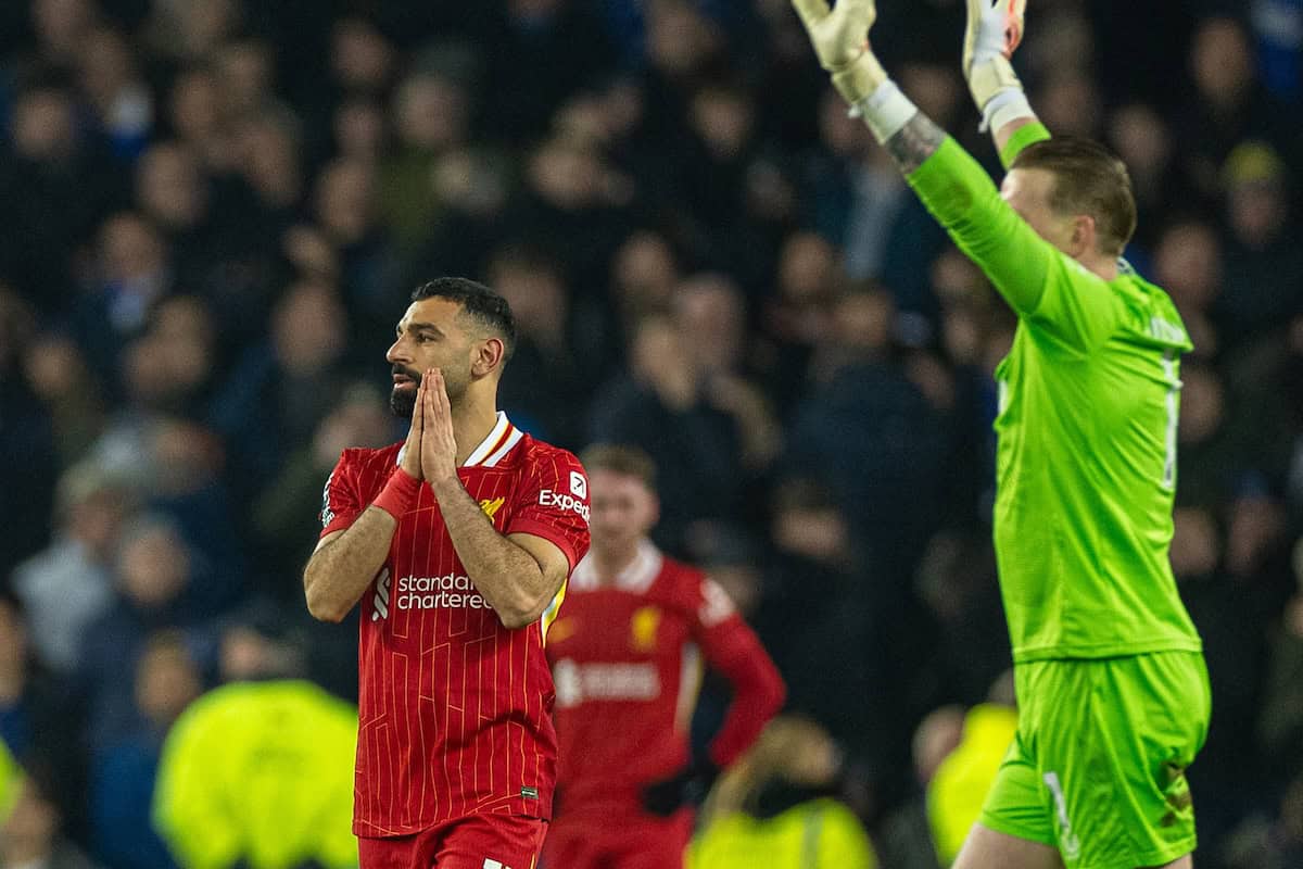 A familiar pattern was established with Liverpool dominating possession, though there were few chances for either side, the closest a driving effort from Dominik Szoboszlai smothered at the second opportunity by Jordan Pickford.