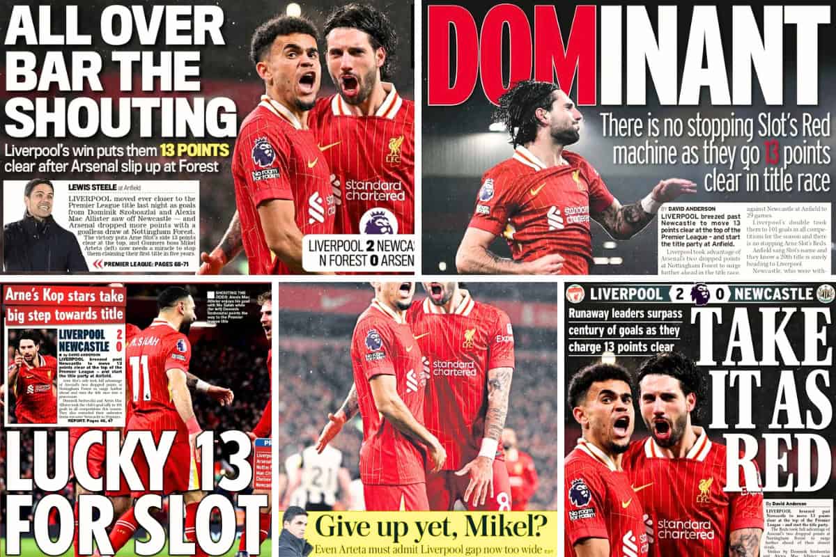 The media are in no doubt as to where the Premier League title is heading after Liverpool’s 2-0 win at home to Newcastle, with Dominik Szoboszlai taking praise.