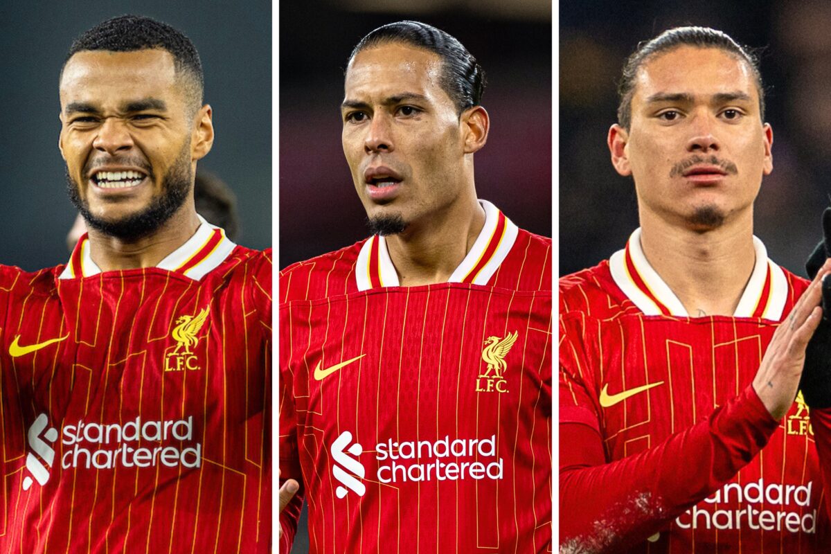 Conor Bradley (hamstring), Joe Gomez (hamstring) and Tyler Morton (shoulder) are Liverpool’s only absentees.