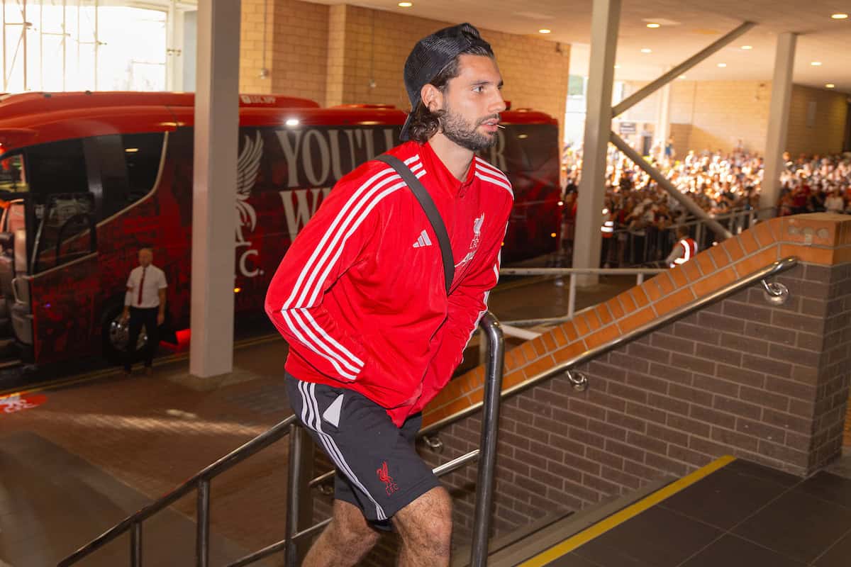 Mac Allister is not involved for the second game of the Reds’ title defence, which has forced Slot into another rejig in midfield.