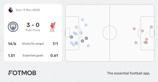 Crystal Palace (48-45), Chelsea (41-32) and City (49-31) all had the upper hand on Slot’s men in the physical contest, and all scored first to leave Slot desperate for a solution.